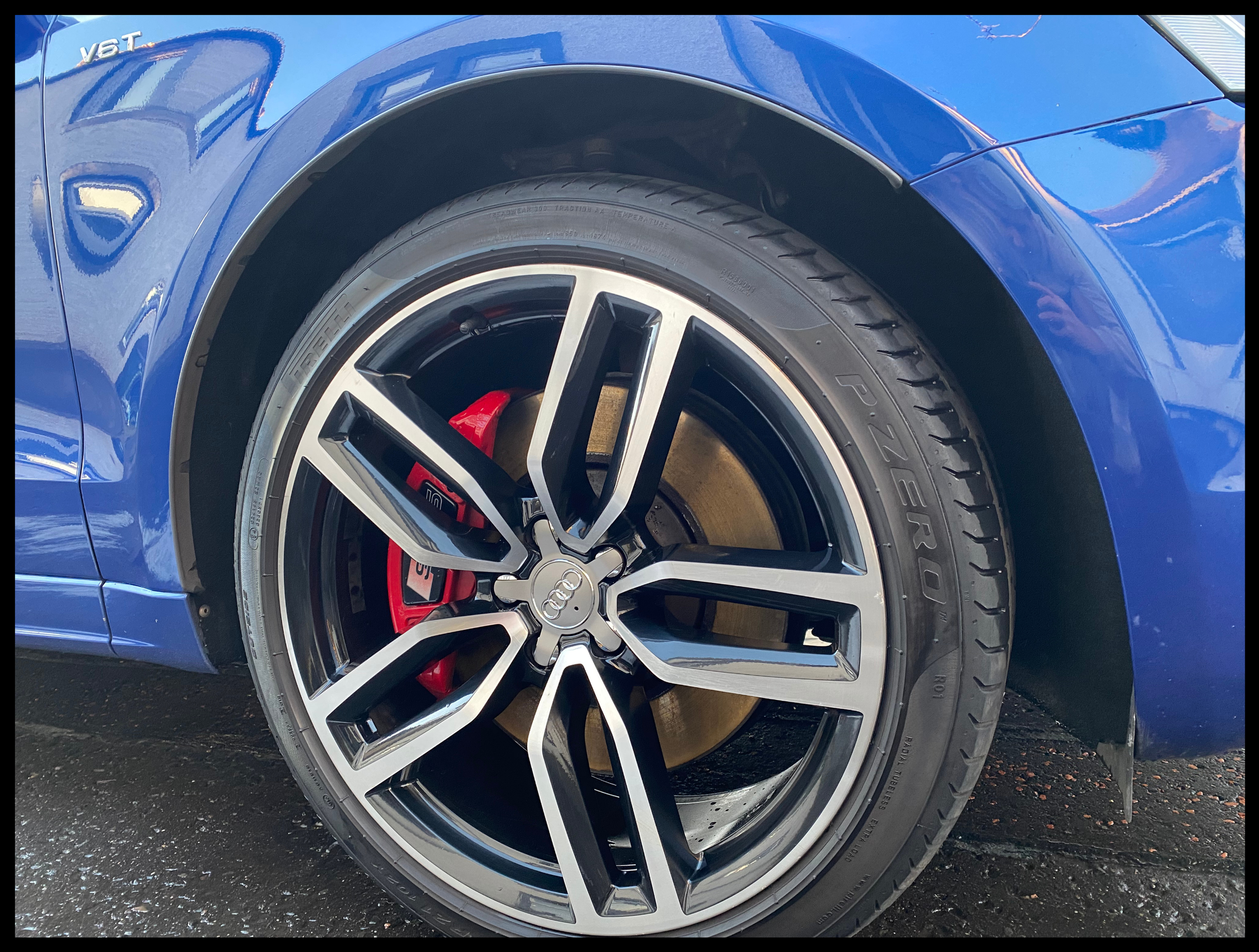 Alloy wheels and tyres thoroughly cleaned, decontaminated and dressed for a crisp, factory-fresh look.